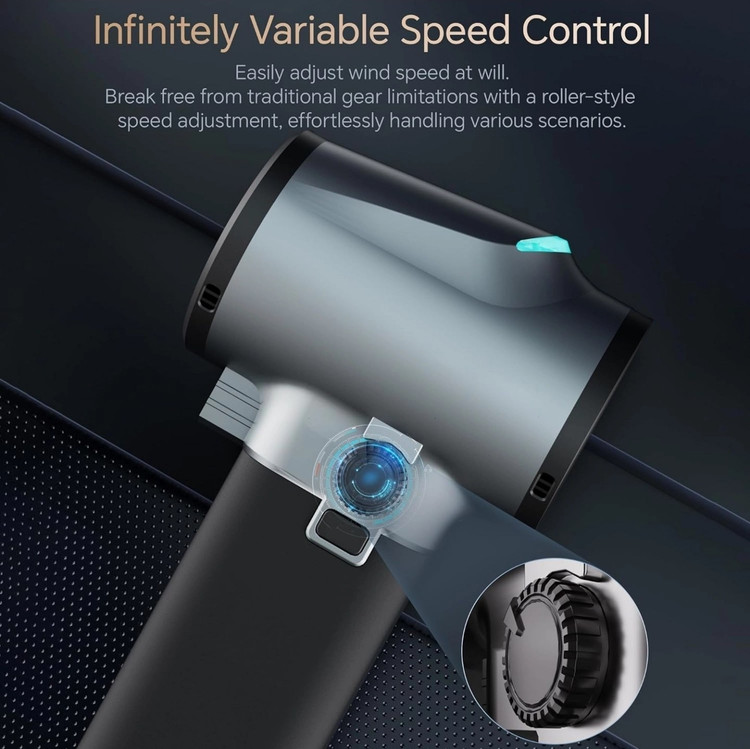 سرعت متغیر بی نهایت: طراحی دستگیره بی نهایت متغیر، به سرعت بین 100-1000 گرم رانش دمنده در یک ثانیه بدون انتظار تغییر می کند. دکمه های سرعت توربو جداگانه برای حداکثر نیازهای خشک کردن و گردگیری ماشین شما، رسیدن به حداکثر جریان هوا 55 متر بر ثانیه، حداکثر رانش 1.5 کیلوگرم است. طراحی قابل حمل تر برای استفاده.
