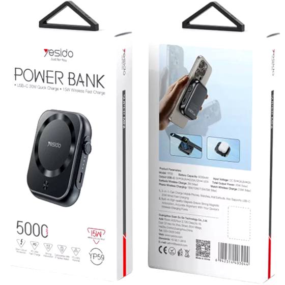 بدنه خوشدست و طراحی مینیمال آن باعث میشود بهراحتی در کیف یا حتی جیب جا شود. پاوربانک YP59 علاوه بر شارژ وایرلس، دارای خروجی Type-C پرقدرت است که همزمان میتواند چند دستگاه را با حداکثر سرعت شارژ کند.