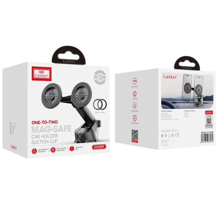 هولدر دوگانه داشبوردی ارلدام EH309 – پایه مغناطیسی 360 درجه برای دو گوشی